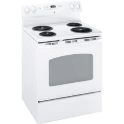 GE White Freestanding Electric Range – 4 Burner Ceramic Glass Cooktop – Automatic Shut-Off – 5-cu Ft