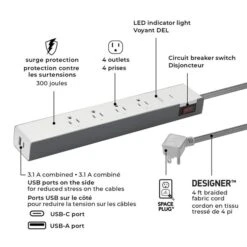 Globe Electric Flexigon 4-Outlet 2-USB 450 Joules 1875-Watts Surge Protected Power Strip