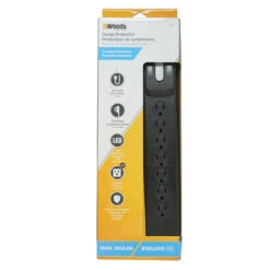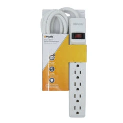 Woods 6-Outlet Power Bar With Surge Protection – 2 Pack – White