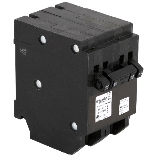 HomeLine breakers feature Qwik-Open circuit breakers, which give homeowners a new standard for reliable, fast acting circuit protection. Tandem and quad space saver circuit breakers are ideal for adding additional circuits to an existing HomeLine panel with limited space. Adding tandem or quad breakers double the number of circuits in a panel, as they only require 2 spaces in the panel. Provides overload and short circuit protection (120/240Vac). Inner Circuit: 1 – Double Pole 20A breaker / Outer Circuits: 2 – Single Pole 15A breakers. Accepts Al/Cu conductors, Lug Range #14-#8. 10,000 Amperes Interrupting Rating (AIR). CSA approved to only install in Canadian HomeLine Loadcentres