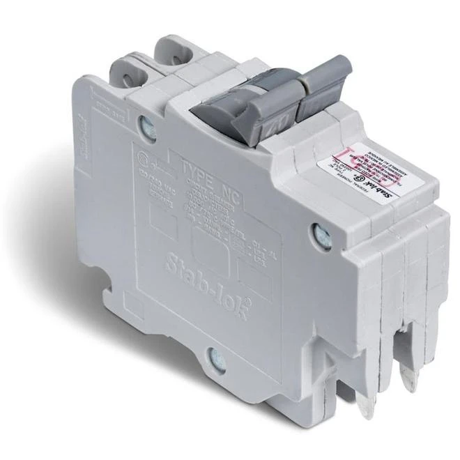 Stab-lok breakers are fully interchangeable with all past breakers and deliver the same proven quality. The unique Stab-lok breaker design of only a 1/2 thick per pole, allows for the reduction of the size and weight of the loadcentre. This breaker will work only in Federal Pioneer Stab-lok branded residential panels. Typical application for a double pole 40 Amp breaker include an electric range (240V up to 3.75kw) in a home and requiring a wire size of 8-3. Provides overload and short circuit protection (240Vac). 10,000 Amperes Interrupting Rating (AIR). Lug Range: #14 – #6. Provides Slot/Robertson screws.