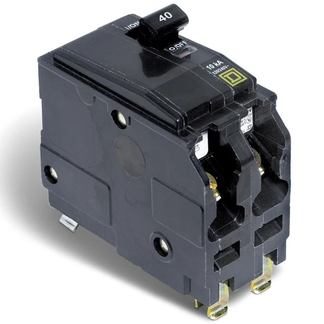 The exclusive QO Visi-Trip instantly identifies a tripped circuit breaker with a red indicator window. The Visi-Trip reduces the number of call backs, as well as the chance that other circuits will be turned off accidentally. This breaker will work only in Square D branded residential panels. Typical application for a double pole 40 Amp breaker include overload and short circuit protection for electric ranges. Provides overload and short circuit protection (240Vac). 10,000 Amperes Interrupting Rating (AIR). HACR type for use with air conditioning, heating and refrigeration equipment having motor group combinations and marked for use with HACR type circuit breakers. Slot/Robertson screws for wire termination. Option for padlocking breaker in oON” or oOFF” position.