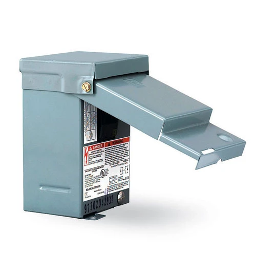 For use as a disconnecting means on residential and commercial air conditioning installations, as well as other single-phase applications, such as swimming pools and pump houses. Non-fusible moulded case switch. Non-Pull out design. No separate pull out that can be lost. NEMA Type 3R metallic enclosure. 240 Vac single-phase, two-wire. Standard HP Rating: 10. Tin plated copper contacts.