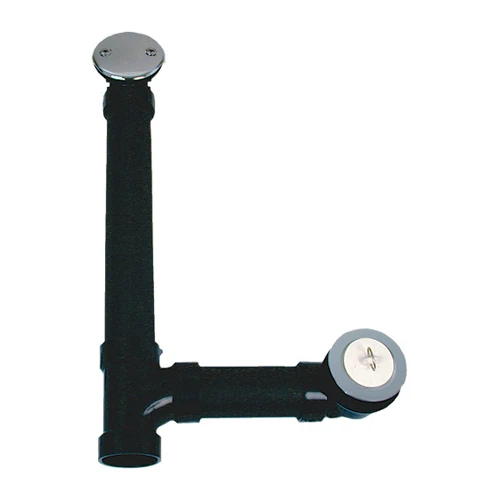 ABS bath overflow, fits standard size bathtubs. Contains:SCH40 ABS pipes, 15 in x 1 1/2 in diameter, plug and chain. Chrome finish on exposed parts.