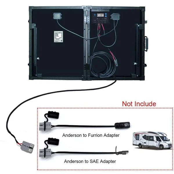 - Pre-wired and pre-installed stand allows for easy and quick set-up; MC-4 connectors or Anderson plug allow easy installation to RVs, campers, or trailer battery unit