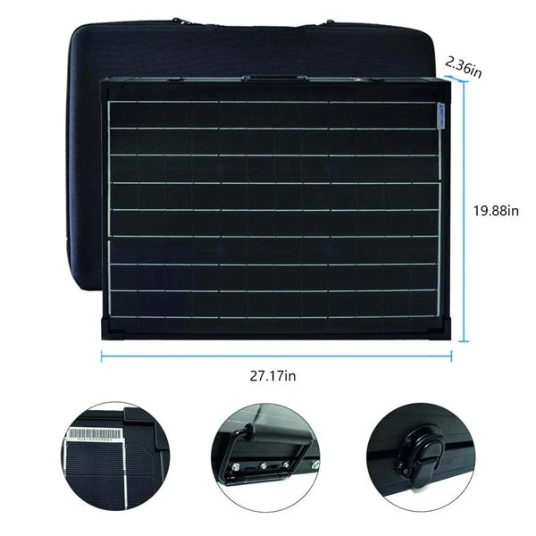 - Folding and portable design: Two 50-watt solar panels attached in pairs
