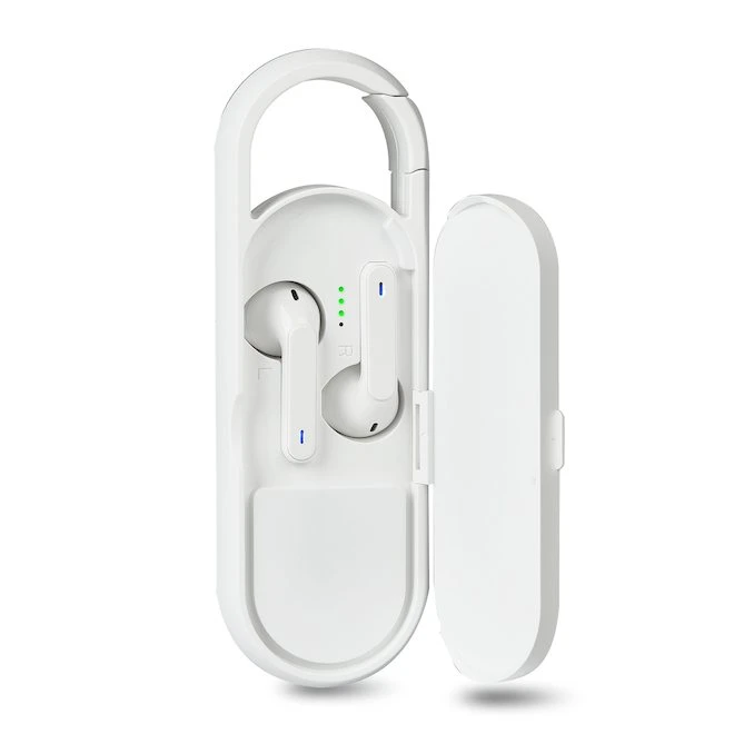 Duo wireless speaker and earbuds all-in-one by Acoustic Research. You now can listen to your music by yourself or can share with everyone around you. The unique 3-in-1 design : speaker with 4 hour playtime, earbuds with 20 hour playtime with charging case and built-in charging case. You simply clip it on your bag with the hanging travel clip.