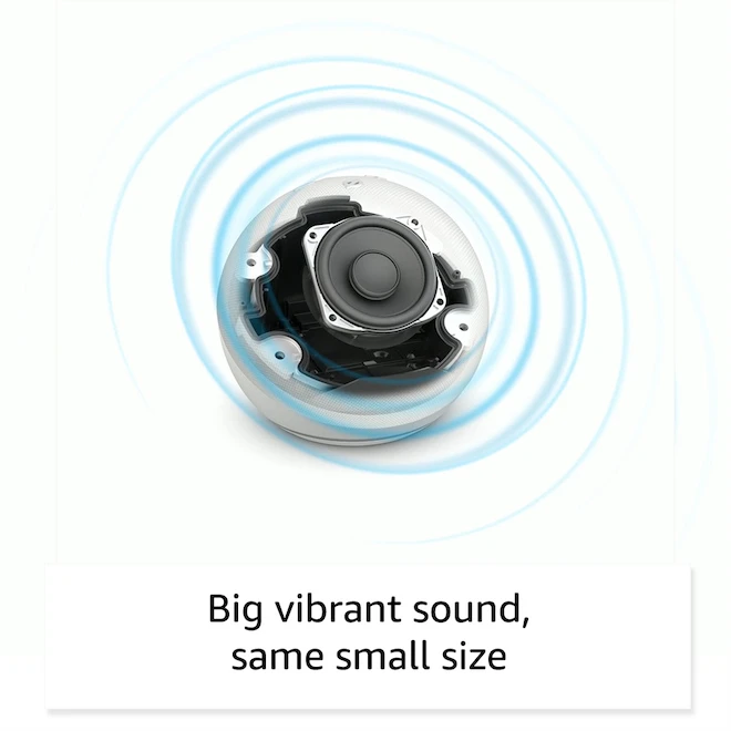 Our Best Sounding Echo Dot Yet – Enjoy an improved audio experience compared to any previous Echo Dot with Alexa for clearer vocals, deeper bass, and vibrant sound in any room.