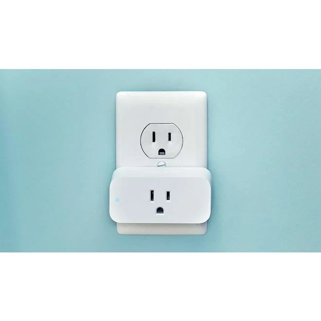 Enjoy energy savings effortlessly with the Amazon smart plug! The plug is compatible with Alexa so you can use voice control on any electrical outlet in your home. It lets you schedule lights, fans, and devices to turn on and off automatically whenever you want, or to remotely control them when you’re away from home. Setup is child’s play: just plug in and open the Alexa app from your smartphone to start using voice commands. Its compact design leaves the second free plug, while its connected system is fully independent, no smart home hub required. The product is backed by a 1-year limited warranty. The Alexa voice service is available in English only.