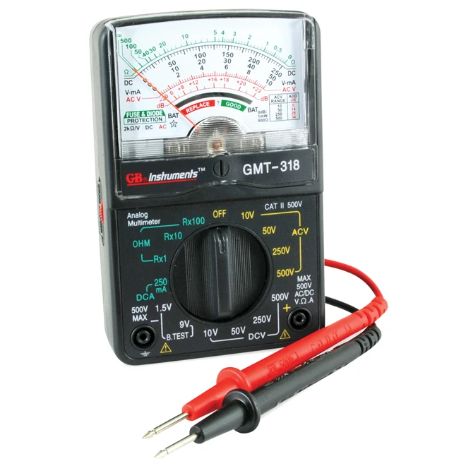 6-function manual range analog meter, easy-to-read colour-coded analog display.