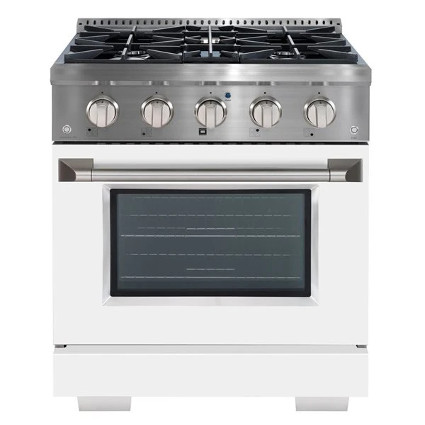 Professionally engineered for style and performance, this 30-inch freestanding gas range features solid cast iron grates, bold control knobs and a design that will give your kitchen a professional look. Four Italian-made DEFENDI burners allow you to cook from a high heat for boiling, frying or searing to a low simmer for the most delicate sauces, and the convection oven will help you deliver perfect meals in no-time.