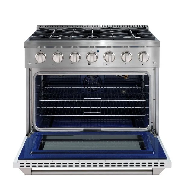 Professionally engineered for style and performance, this 36-inch freestanding gas range features solid cast iron grates and a design that will give your kitchen a professional look. Six Italian-made DEFENDI burners allow you to cook from a high heat for boiling, frying or searing to a low simmer for the most delicate sauces. The convection oven will help you deliver perfect meals in no-time.