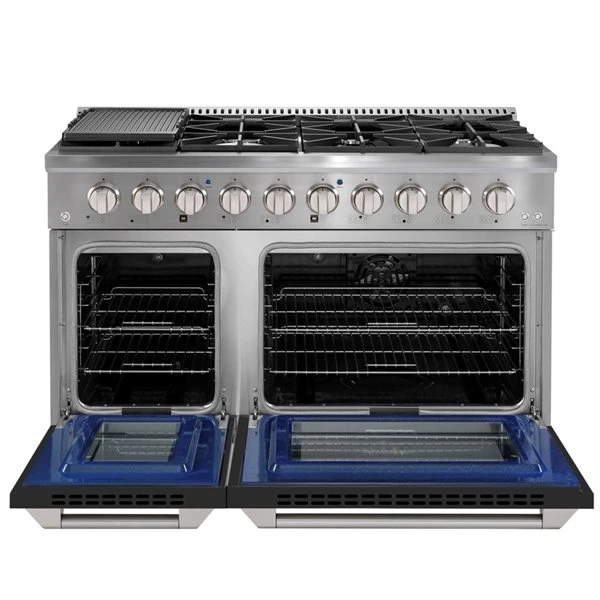 - 48-in free-standing range with side-by-side double oven [100 L (4.2 cu. ft), 56 L (2.5 cu. ft)]
