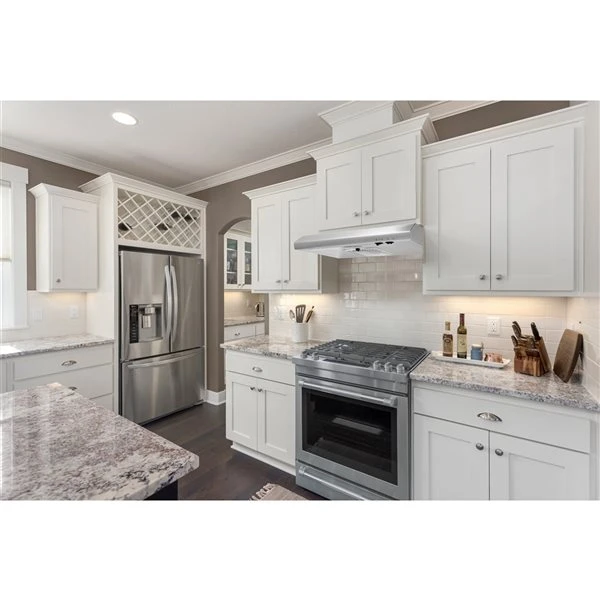 Aria offers a unique line of premium range hoods. This sleek modern design will complement any kitchen decor. The 30-in 185 cfm under cabinet range hood accommodates indoor and outdoor venting. It features a 2-speed rocker switch and a minimum sound level of 3.2 sones for a quiet experience while range hood is active. It is easy to install, use and maintain. Enjoy top performance without compromising on style with Arias range hood, the perfect addition to your kitchen.
