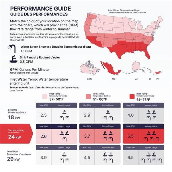 - Flow sensor will turn unit on automatically – saves up to 50% on water heating costs