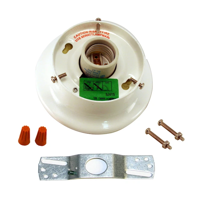 - Complete with crossbar, wire nuts, knurled screws and includes a porcelain socket