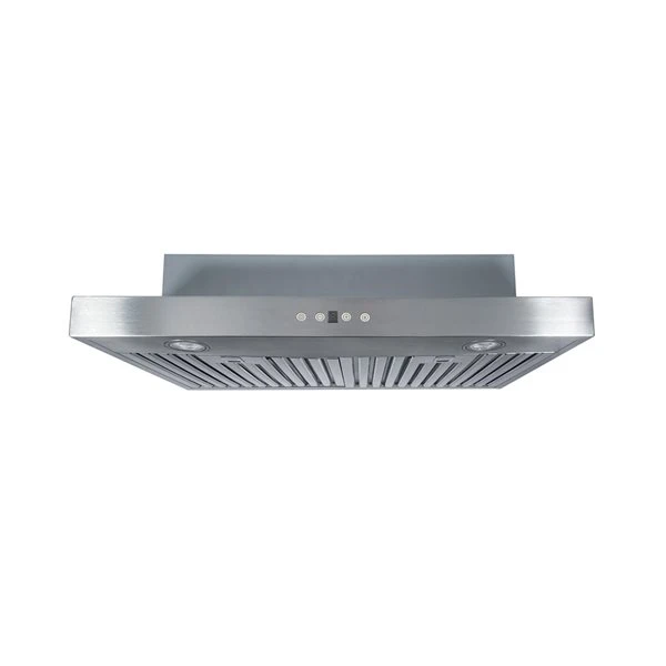 This 30 inches discreet and efficient stainless steel under cabinet range hood offers high performance ventilation with its powerful 600 CFM internal blower motor. The soft touch electronic controls activate the 3-speed fan and LED lighting. The unit also includes 2 types of filters, stainless steel baffle or reinforced micro mesh to efficiently remove grease and heated vapours from the air. Designed for a standard ducted vertical exterior installation, the under cabinet range hood integrates 6 inches circular exhaust duct connection.