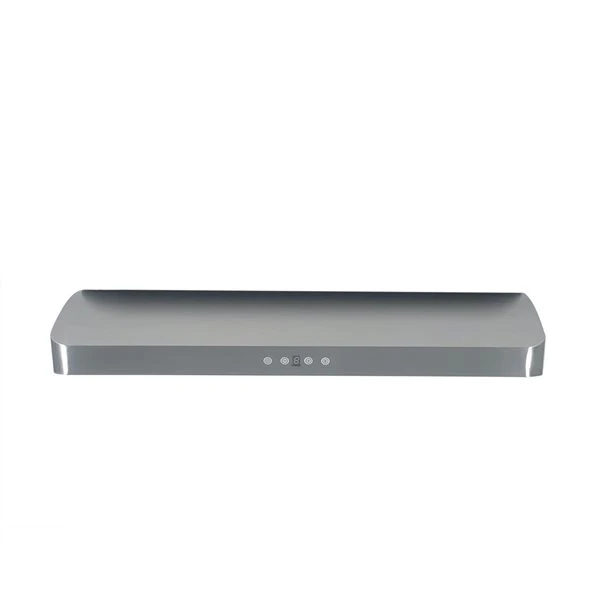This 30 inches discreet and efficient stainless steel under cabinet range hood offers high performance ventilation with its powerful 600 CFM internal blower motor. The soft touch electronic controls activate the 3-speed fan and LED lighting. The unit also includes 2 types of filters, stainless steel baffle or reinforced micro mesh to efficiently remove grease and heated vapours from the air. Designed for a standard ducted vertical exterior installation, the under cabinet range hood integrates 6 inches circular exhaust duct connection.