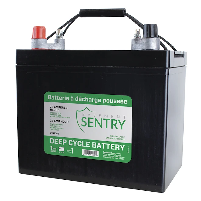 This deep cycle battery charges 5X faster than other batteries. There is no battery acid to fill, no mess and no cleanup, for maintenance free operation. This battery can power a pump intermittently for days.