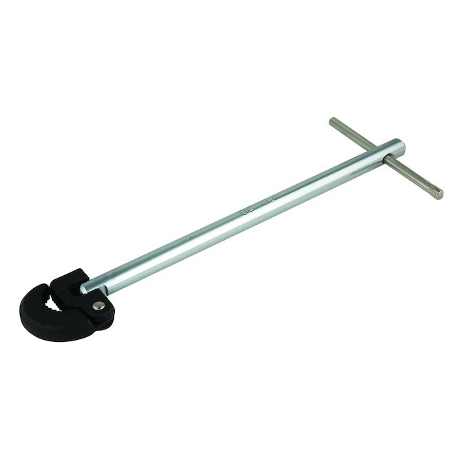 This BrassCraft basin wrench features a 10 in arm that easily removes blocked faucet nuts. Its reversible head is ideal for working in tight spaces and its spring-loaded jaw securely grips the nut every time. This tool’s durable, solid steel handle provides greater torque leverage and its heavy-duty steel construction ensures a solid performance for years to come.