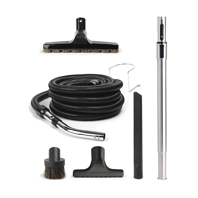 This Nutone standard accessory kit with uncrushable hose includes everything you need to keep your home spotless and dust free. Featuring nozzles for hard floors, drapes and furniture, and a 30-foot hose, the kit speeds up the cleaning of every nook and cranny.