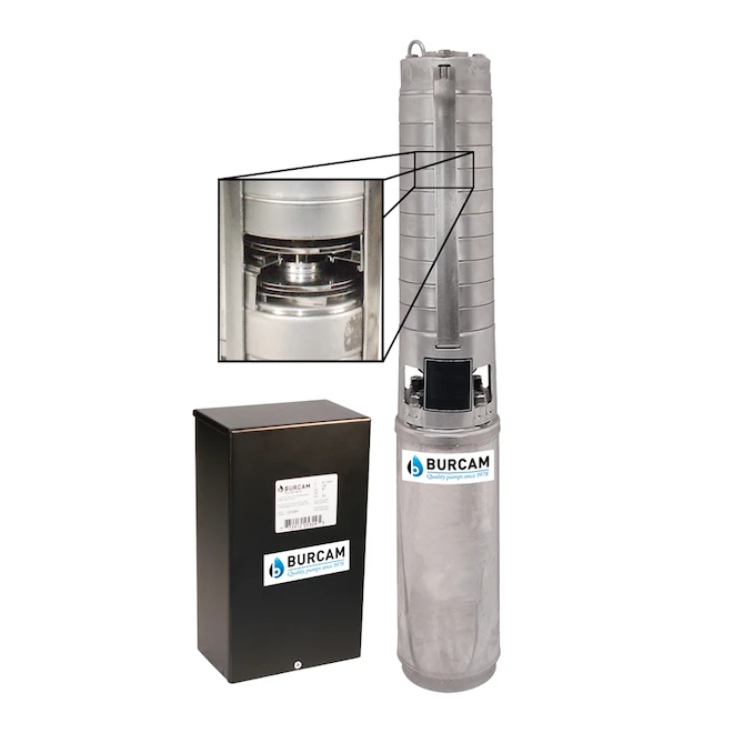 The Burcam submersible pump is recommended for homes, cottages and farms for installation in water wells that are 4-inch in diameter or larger. Made of non-corrosive 316 stainless steel with a NEMA standard interchangeable. This pump features a continuous duty motor for durability. The control box is included with the pump. It pumps up to 900 US GPH and has a maximum head of 275 feet. Best efficiency is between 114 and 198 feet (with a 20/40 PSI pressure switch) or 91 to 175 feet (with a 30/50 pressure switch).