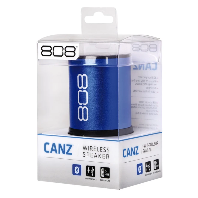 The CANZ mini Bluetooth wireless speaker from 808 will impress you with its small size and big sound. A dynamic sound and the possibility to connect a device such as a smartphone or a tablet via Bluetooth or aux-in cable makes for the best music listening experience, everywhere. Its LED pairing indicator tells you easily whether or not a device is already connected. Equipped with a lithium-ion battery, the mini speaker can broadcast music at a normal volume level for over 6 hours. Its anodized aluminum casing ensures greater resistance for the speaker. A USB charging cable and an aux-in cable are included. One-year limited warranty.