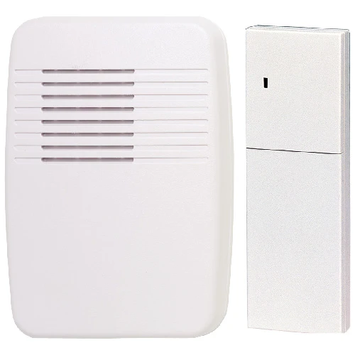 Chime extender. Activate plug in chime when existing chime sounds. 8-note melody, volume control. Transmission range up to 100 ft. (approximately 30 m). Chime unit plugs into any standard wall outlet.