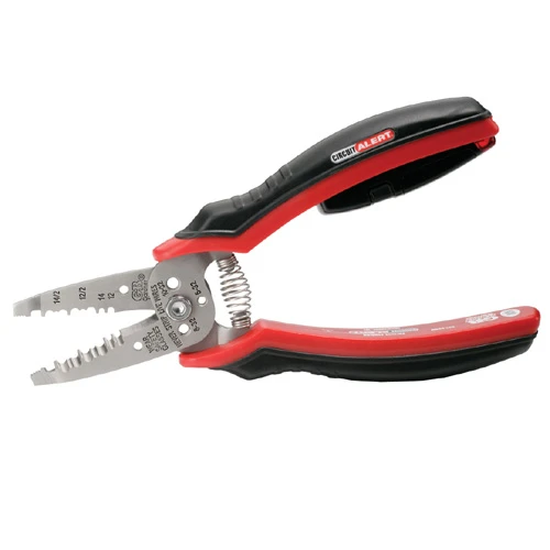 Circuit Alert(TM), volt sensing wire stripper, NM with built-in voltage detector senses AC voltage from 50 – 600 VAC. Audible and visual alerts indicate the presence of voltage. Cuts and strips solid and stranded wire. Stainless steel body for maximum corrosion resistance. Ergonomic, cushioned handles for ultimate comfort and control. Cuts and rethreads bolt sizes 6-32, 8-32, 10-24 and 10-32. Wire looping holes form wire.
