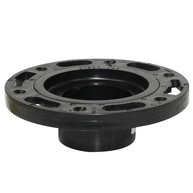 ABS DWV adjustable toilet flange, 4 in. x 3 in. spigot, fits cone-shaped non CSA 3 in. drain.pipe, black.