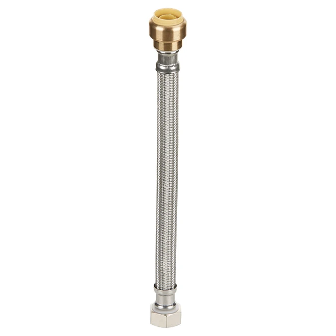 Install your water heater with this Aqua-Dynamic flexible water heater connector. It is made of series 300 braided stainless steel for strength and durability. The connector features a 3/4″ female end, a 3/4″ push-fit end and is 12″ long. The push-fit connection provides hassle-free installation without the need for solder, flux or glue.