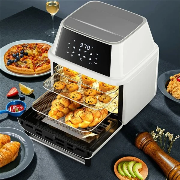 This 8-in-1 air fryer oven is designed with the hot air circulation system for a healthier way of cooking, allowing you to enjoy the delicious food without the extra fat or calories. The 8 built-in presets make cooking easier. The large capacity allows you to cook a variety of foods at the same time to meet the needs of the entire family. With a rotating function, it is perfect for cooking a turkey.