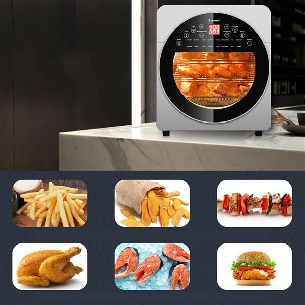 Get healthy food with crispy outside and tender inside with this air fryer toaster oven! Oil-free cooking method drives out the extra fat in the food itself, while maintaining deep fried crispiness. With 16 built-in presets, this air fryer oven will simplify any cooking task. The intelligent control panel lets you conveniently adjust time, temperature, cooking function and heating position. You can prepare ample gourmet food for your family members with ease. All these accessories are removable for easy cleaning.