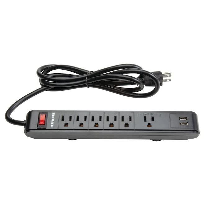 Six electrical outlets and two USB ports. Strong rubber-coated magnet holds tight and protects the paint finish. 90-day limited.