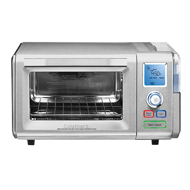 This 1800-watts toaster oven offers a 0.6 cubic feet capacity to cook your meals up to 35% faster than a conventional oven. Thanks to the steam, food will keep its nutrients, vitamins and minerals as well as stay soft and fresh. Also, the steam cleaning function will greatly easy the cleaning process. This convection oven presents the functionality of a professional steam oven in a convenient format adapted to everyday life; choose one of the nine unique or combined function programs. This product is backed by a 3-year warranty.