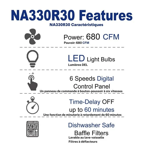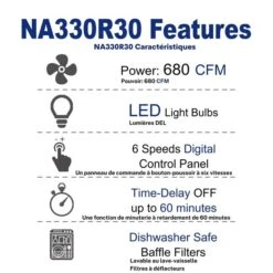 | Package Contents | 1 hood, 1 installation kit, and 1 damper |