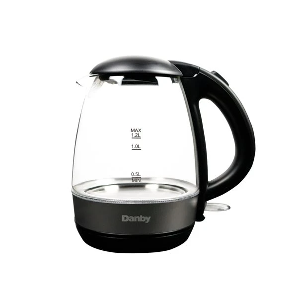 Enjoy the perfect cup of tea, hot chocolate, or make instant meals with the 1.2 L capacity glass kettle by Danby. Ideal for small households to make a quick drink or for the college student short on time but needs a quick meal. Features include a blue LED indicator light when turned on and a built to last design that is compact, space-saving and looks great in any modern kitchen. With 1500 watts, this electric kettle is easy to operate, store and can boil water faster than a microwave. The powerful rapid-boil system provides fast heating from any standard outlet and the auto shutoff function helps keep the kettle from boiling dry. Pair this model with your French press and make the ideal cup of coffee. All your hot beverages and quick meals can be served easily with the 360 degree rotating base, allowing easy filling, and pouring without the cord.