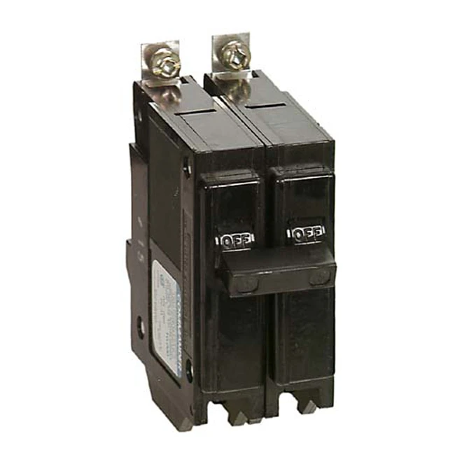 Double pole bolt-on circuit breaker. 15 A. 120 V /240 V. 3/4 in. One-piece moulded plastic case. Easy to install. No bolts required. For Cutler-Hammer QM/QL panels. 10,000 amp interrupting rating (AIR). Also offered in 20 A, 30 A and 40 A.