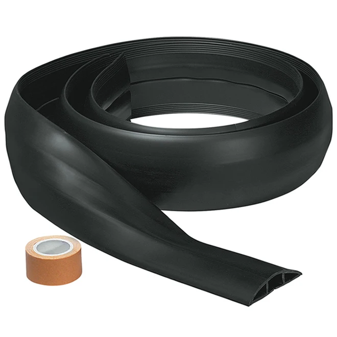 The wire cover from Duraline organizes and conceals wires and cords while creating a smooth, trip-free surface. It applies to any flooring surface with pressure-sensitive tape (included). It can be cut to any length with scissors or utility knife. It measures 2.5-in (6.35 cm) x 15-in (4.5 m).