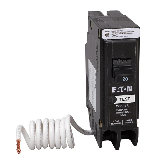 Eaton BR type single-pole ground fault plug-in circuit breaker. Provided with an auto-monitoring function that will allow for periodic automatic testing of the ability of the device to respond to a ground fault. For use in BR type load centres only. 10 year limited warranty.