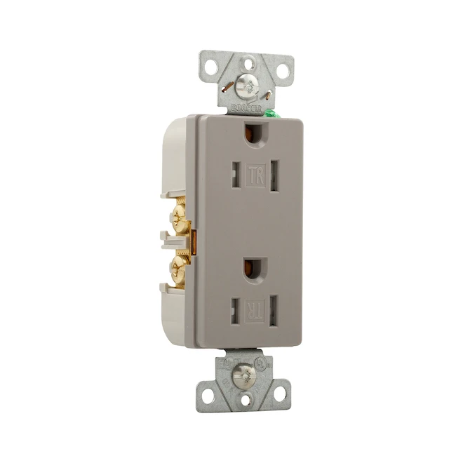 This grey finish commercial grade decorator duplex receptacle offers 15A 125V capacity designed to provide a dependable, long lasting user experience while increasing speed and efficiency of installation. The convenient back and side wire connections allow for use with #10-#14 AWG solid or stranded wire. Tamper resistant receptacles not only provide code compliance, they also deliver automatic, continual protection from electrical injury as a result of inserting foreign objects. Its durable impact-resistant thermoplastic face and back body is virtually unbreakable and chemical-resistant.