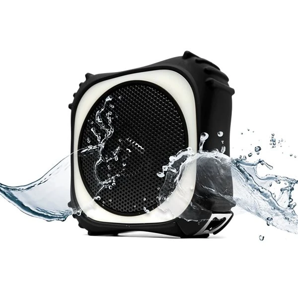 IPX7 waterproof Bluetooth® speaker with compact, rugged styling & RGB LED party lights. Featuring a booming 20W speaker and large passive sub-woofer, the EcoEdge Prohas incredible sound in a portable package, and is still tough enough for every outdoor adventure. Includes an EcoTalk button for Google and Siri voice activation. New updated features include 20 mode colour syncing LED party lights and EcoCast capable to over 100 units.