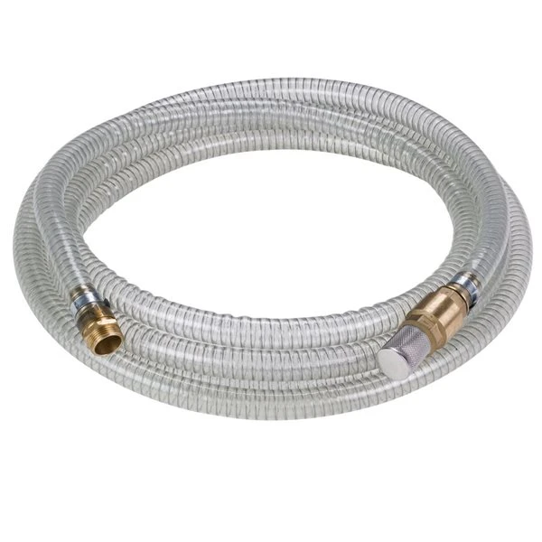 Einhell 7 m long (23-ft) suction hose for AQUINNA cordless water pump, with 1-1/4-in brass couplers. The transparent fabric hose is extremely stable thanks to the reinforcement with steel wire. The suction hose is suitable for multiple Einhell pumps including AQUINNA. GC-GP. GE-AW, and much more.
