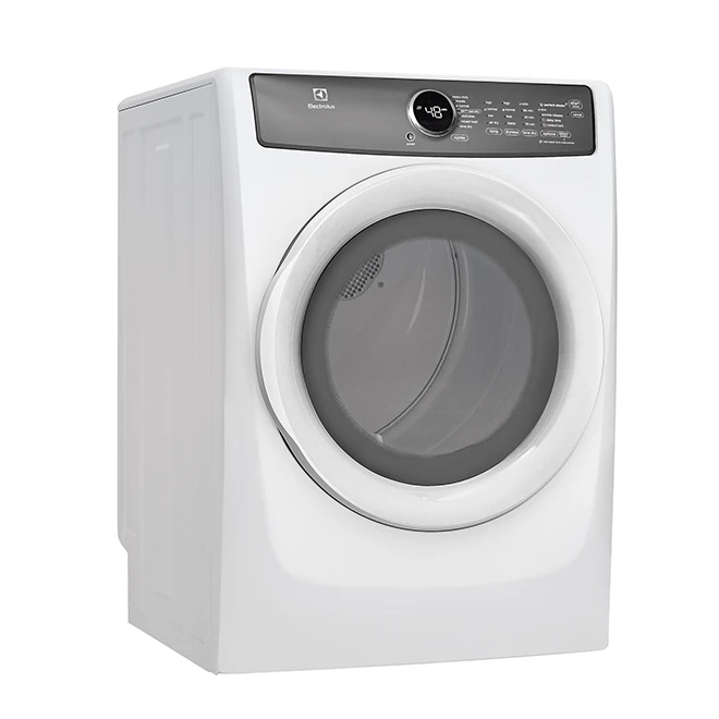 This Electrolux(R) stackable tumble dryer combines performance and energy efficiency. With a capacity of 8 cu. ft., it features the Perfect Steam(TM) wash system, which gently removes wrinkles and reduces static to keep clothes looking like new longer. This dryer offers a choice of seven cycles to accommodate all types of fabrics. In addition, the Fast Dry function lets you quickly dry the items you need most in only 20 minutes, while the Luxury-Quiet(TM) technology makes this appliance so quiet that you can run it whenever you want without disrupting your household. Energy Star certified, this dryer is backed by a 3-year limited warranty on parts and by a 1-year limited warranty on labour. It is highly recommended to use a 4″ (10.2 cm) diameter rigid aluminum or galvanized steel duct with this product.