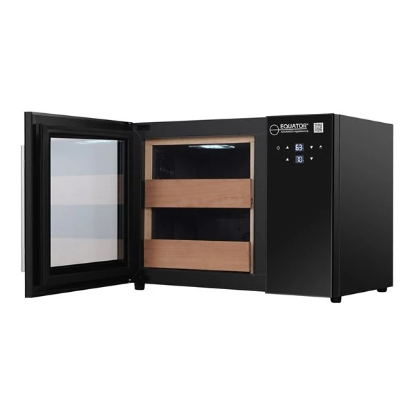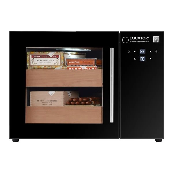 The Equator 1.4-cu ft Cigar Humidor is the optimal way to store and age your favourite cigars. Lock it in the perfect humidity range between 65% and 75% with the electronic humidity control, the removable water container, and crisp cedar shelves. Also get the ideal temperature ranging from 59°F and 72°F using the intuitive touchpad controls. The soft interior LED light and anti-UV glass protect your prized collection, only enhancing that heavenly cedar taste and aroma with your next cigar. Designed in sleek black with a stainless steel handle, this humidor is an attractive and elegant way to showcase your cigar collection.