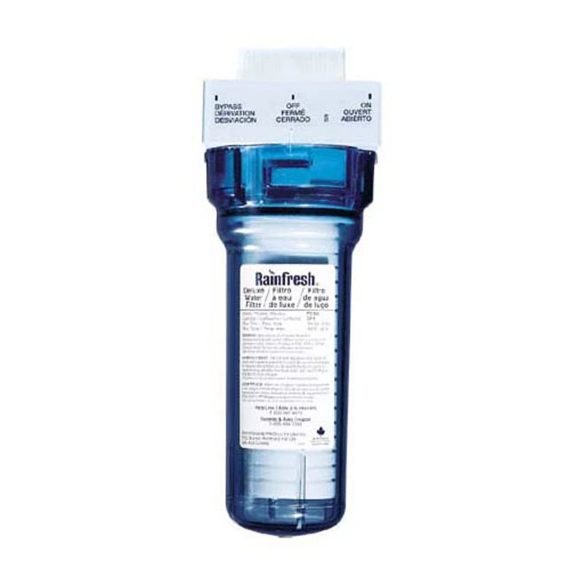 Deluxe water filter in-head valve with CF1, 5-micron cartridge. Household water filter for chlorine, sediment removal, etc.