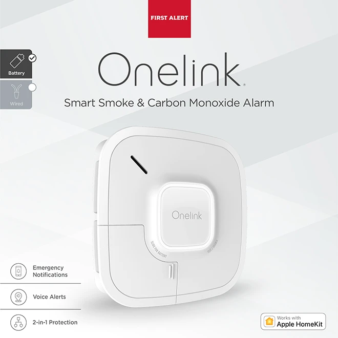 Rest easy knowing your home is protected by the First Alert® Onelink® Wi-Fi and Bluetooth 2-in-1 smoke and carbon monoxide photoelectric detector. This combination alarm uses voice alerts to warn you of danger and features an expanded operating system for compatibility with your smartphone or tablet. It is also equipped with a multicoloured light ring to easily distinguish the status of the alarm. This unit gives you an end-of-life warning after 10 years. It comes complete with a mounting bracket, hardware and manual for an easy installation. This product is backed by a 10-year limited warranty.
