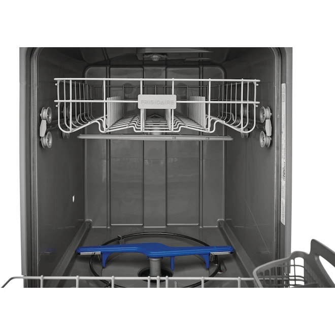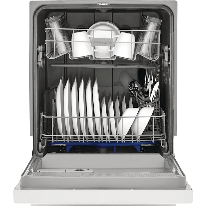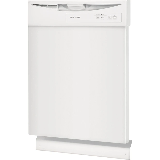 This Frigidaire 24-in built-in dishwasher has a white finish and features 5 wash levels and 2 cycles to give your plates and glasses a complete clean. It is equipped with 2 spray arms and an upper spray nozzle, as well a hard food disposer and a plastic tub. Plus, it has a 12-place setting capacity and features an energy-saver dry option with no heat. At the end of a long day, let this quiet appliance take care of the dishes while you sit back and relax.