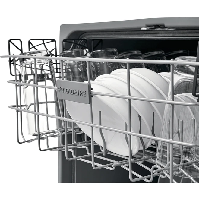 With its OrbitClean spray arm, this Frigidaire dishwasher tackles baked-on food with 4 times better water coverage. It features DishSense technology that automatically adjusts cycle time based on cleaning requirements. Multiple cycles and options provide versatile performance, while the delay start lets you run the dishwasher when it works best for you. With the NSF-certified sanitize option, this quiet-operating dishwasher removes up to 99.9% of household bacteria for clean, optimized results.