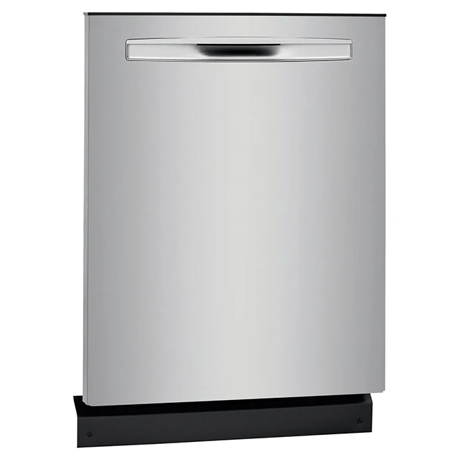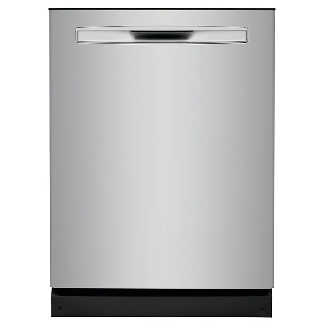 This Frigidaire Gallery built-in dishwasher has a lot of interesting features to optimally clean your dishes. The DishSense technology on this dishwasher automatically adjusts wash cycles depending on soil level, while the AquaSurge technology lets you adjust washing pressure to give you flexible cleaning options. This appliance’s dual OrbitClean spray arms give 4 times better water coverage, and its sanitize rinse option eliminates 99.9% of bacteria. Featuring 8 cycle choices including a 34-minute quick wash, this dishwasher is also Energy Star certified, meaning that it will be as easy on the environment and on your energy bill as it is tough on your greasy dishes. An adjustable upper rack as well as a large 14 place settings capacity let you tackle bigger loads. Plus, a 24-hour delay start option lets you begin the cycle when it works best for you. The SaharaDry option on this quiet-operating dishwasher, which generates only 49 dBA when in use, ensures that you do not need to towel-dry dishes before putting them in the cupboard. Lastly, the appliance’s exterior is coated with a smudge-proof stainless steel finish. Backed by a 1-year limited warranty on parts and labour.